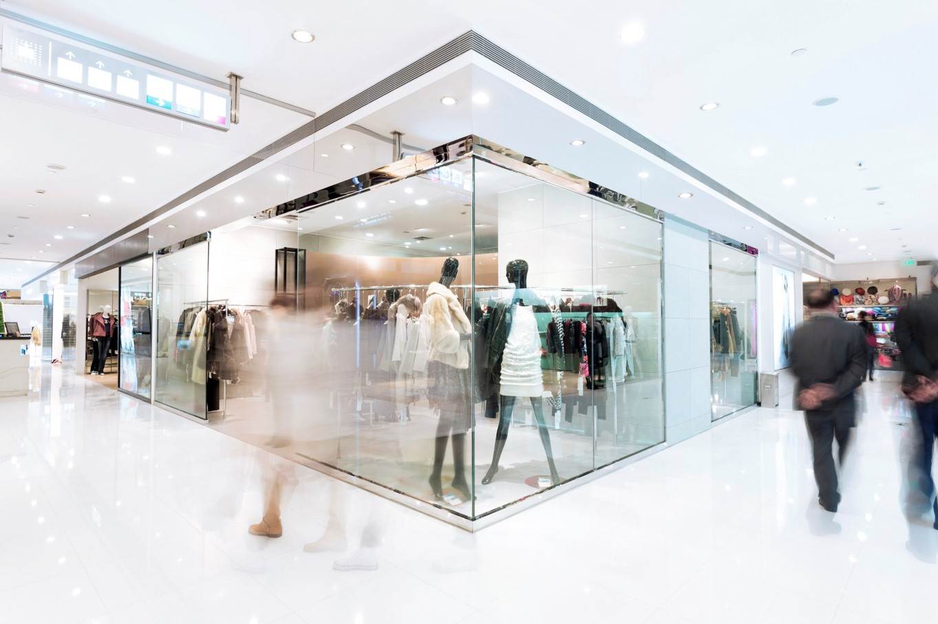 2 storey shopping centre in Poland with large evacuation doors to outside but small doors to the inside space, requiring both air flow through an open door of 0.75m/s or a pressure difference of 50Pa between the stair core adjacent levels.