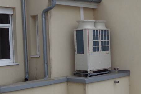 Lösung: Mittels eines City Multi VRF-System konnte der Kundenwunsch erfüllt werden. Das Aussengerät wurde am Flachdach des Obergeschoßes plaziert, im Gangbereich wurde die Zwischendecke für die Installation der 4-Wege-Deckenkassetten genutzt. In den Büros ohne Zwischendecke sind Wandgeräte zur Ausführung gekommen.