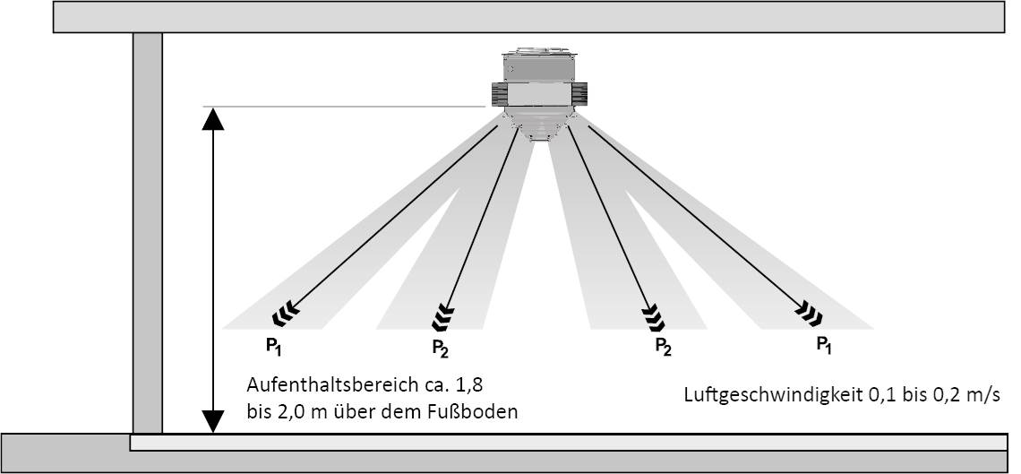 Ausgerüstet mit den neuen geräuscharmen Sichelflügelventilatoren und den patentierten Sekundärluftjalousien (SLJ) erreichen diese Deckenlufterhitzer eine zugfreie Raumdurchspülung und dadurch eine gleichmäßige Temperaturverteilung über das gesamte Grundriss- und Höhenprofil.