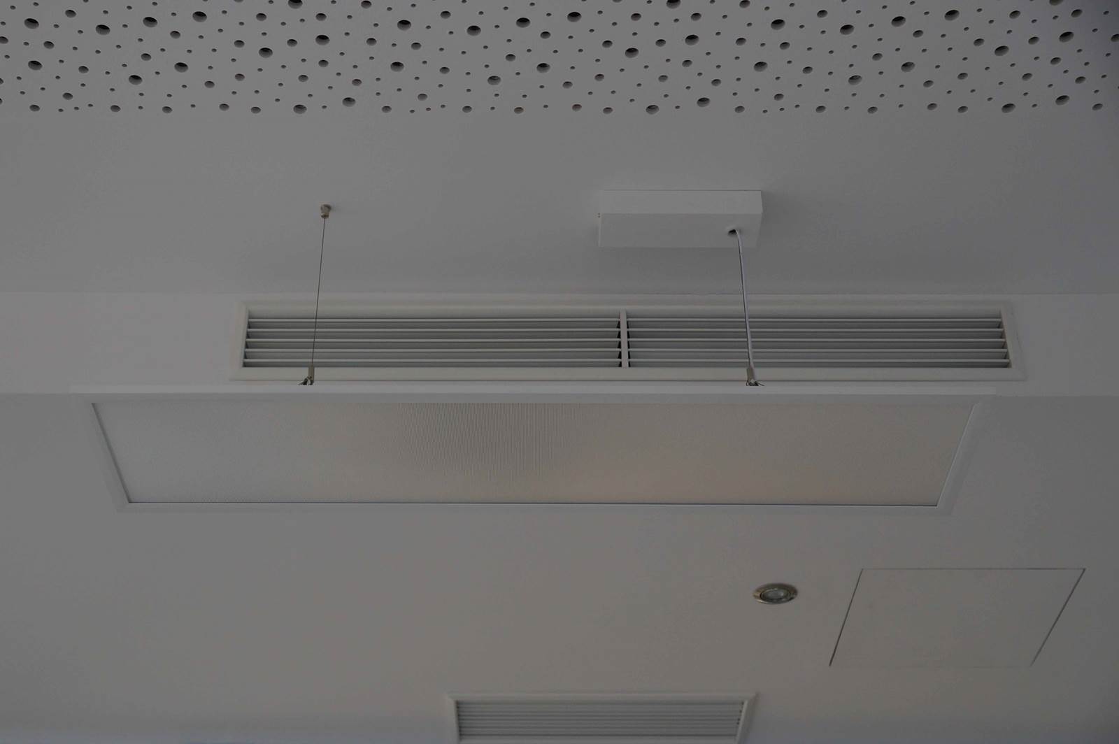 Für die Lüftung wurde ein Kompaktlüftungsgerät Lossnay LGH-150 eingebaut. Jedes Gebäude benötigt Frischluft, um den Personen, die sich darin befinden, eine gesunde und komfortable Umgebung zu bieten. Die Konditionierung der Außenluft benötigt viel Energie. Lossnay löst dieses Problem durch eine effiziente Wärmerückgewinnung. Die hauchdünne Struktur des Kreuzstromwärmetauschers und der Aufbau aus biogenem Material erlaubt einen sehr hohen Wärmerückgewinnungsgrad und den Austausch von Feuchte. Das Lossnay Kompaktlüftungsgerät besticht durch besonders niedrige Schallwerte. Dies erhöht den Komfort und spart deutlich Energie.