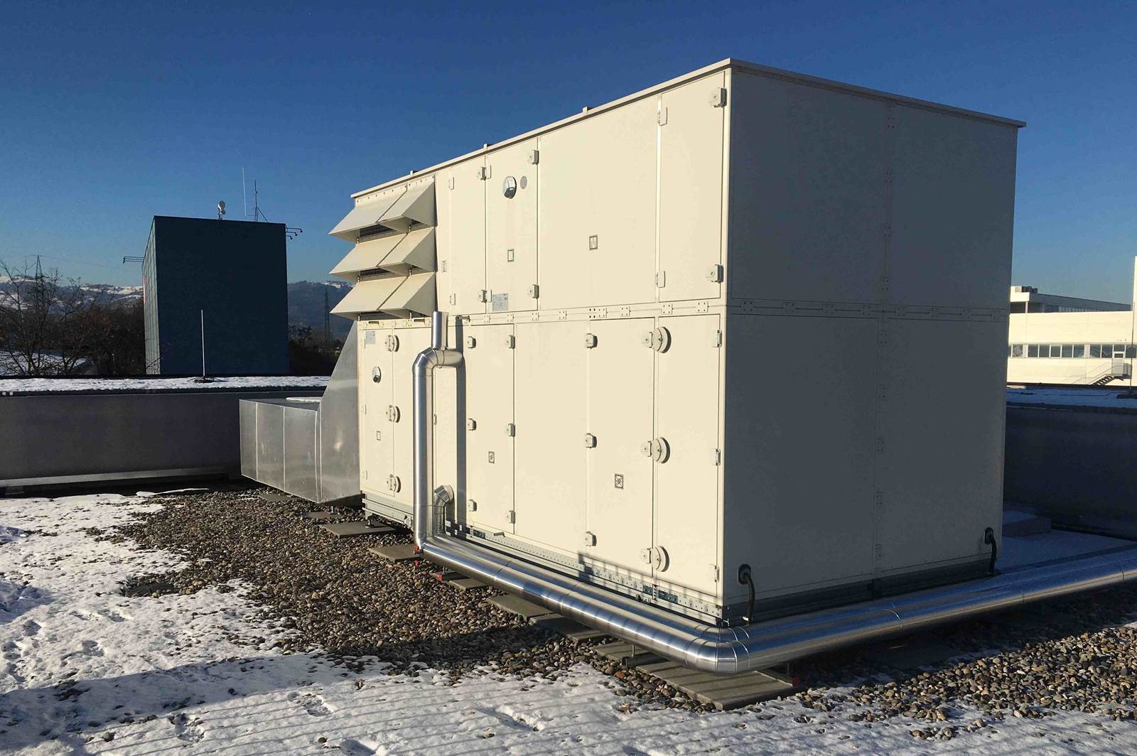 Das Zentrallüftungsgerät CAIRplus SX auf dem Dach sorgt mit der CO2-Regelung rund um die Uhr für die optimale Frischluftzufuhr, was sich positiv auf die Konzentration der Mitarbeiter auswirkt.