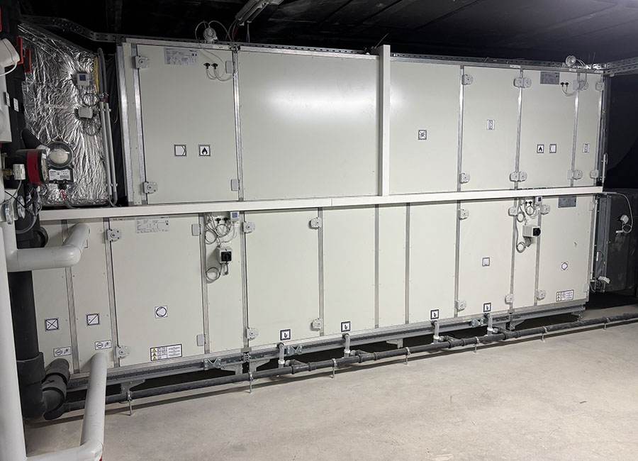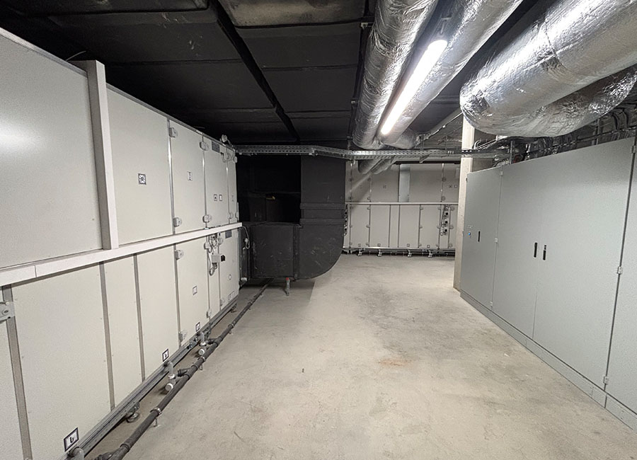 Im Zentrum stehen die hochmodernen FläktGroup CAIRplus Lüftungsgeräte, die modular aufgebaut sind und mit Zonenteilen ausgestattet wurden. So lassen sich einzelne Bereiche individuell gezielt beheizen, kühlen oder belüften – ideal für Seminarraum I–V, Seminarraum Turm, Foyer I, Foyer Gang, Mitarbeiterbereiche (Lounge, Speisesaal, Umkleiden) sowie Lagerbereiche.