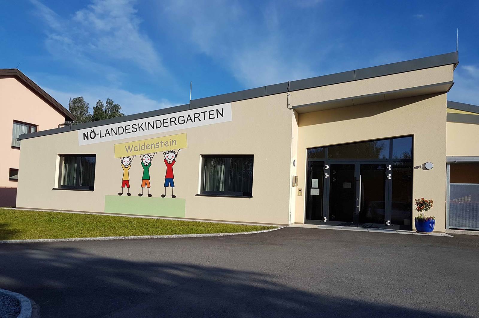 Ein Zubau für eine dritte Kindergartengruppe war aufgrund der zu kleinen Grundfläche beim ursprünglichen Standort des Kindergartens nicht möglich. Daher wurde seitens der Gemeinde Waldenstein ein Neubau in Auftrag gegeben.