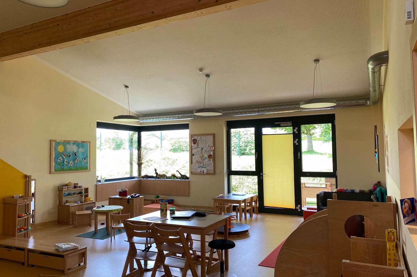 Um Primärenergie zu sparen, wurde bei der Belüftung in den Gruppenräumen großes Augenmerk auf bedarfsgerechte Lüftung gelegt.