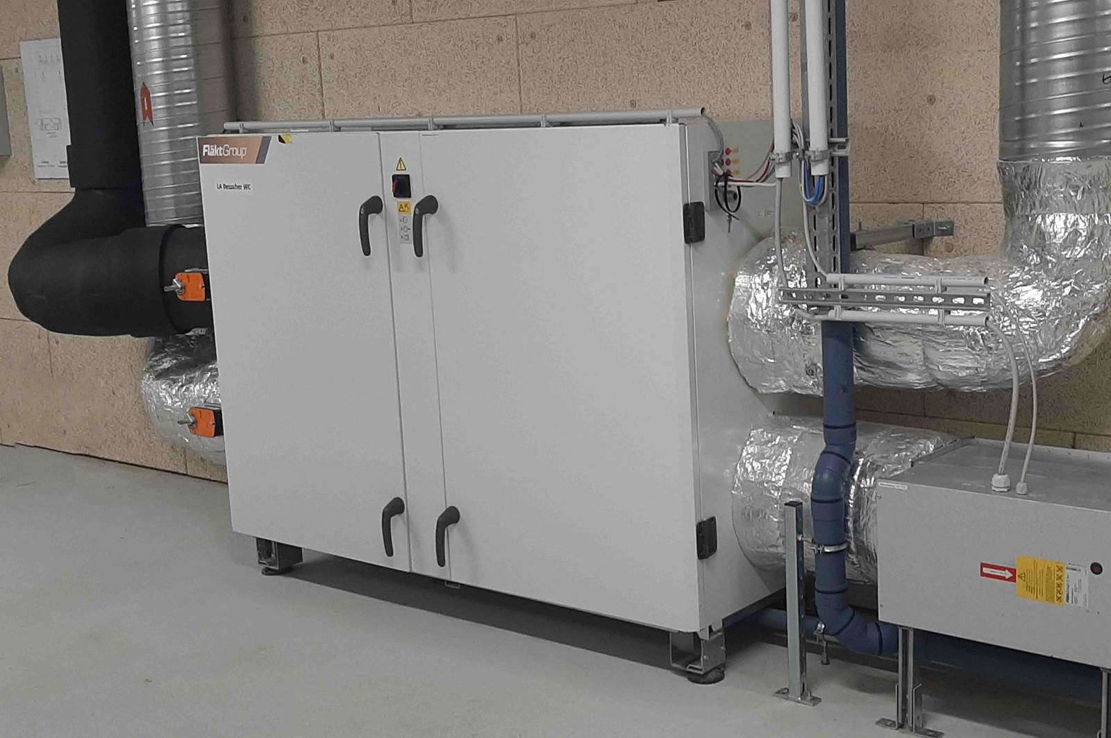 Die Wohnbauvereinigung GFW Gemeinnützige GmbH errichtet in einem Wohnhauskomplex eine Veranstaltungshalle mit ca. 600 Sitzplätzen. Der Veranstaltungssaal wurde von der Volkshochschule Wien angemietet. Der Zuschauerraum und das Foyer wird mit 24.000 m³/h Frischluft versorgt. Die Beheizung erfolgt über einen Warmwasser Wärmetauscher. Die Kühlung wird mit insgesamt 4 Stk. Klimageräten im Direktverdampfer-Prinzip realisiert. Die Außengeräte wurden in der Parkgarage des Gebäudes installiert. Um die erforderlichen Luftmengen in jedem Gebäudeabschnitt zu gewährleisten, wurden 4 Stk. Volumenstromregler Type ERVA verbaut. Die Lüftung für WC 560 m³/h und Künstlergarderobe 2.300 m³/h wurden als Kompaktgeräte im eleganten und flexiblen Design in Hinblick auf niedrige Energiekosten ausgeführt.