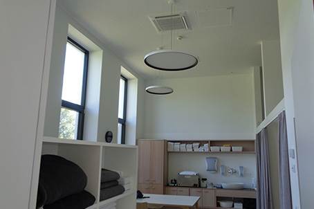 In der Zwischendecke wurden die Umluftkühlgeräte - FläktGroup HyCassette Gebläsekonvektoren - installiert. Das es sich um Behandlungs- und Ordinationsräume handelt sind die hygienischen Ansprüche an das Gerät sehr hoch. Alle Geräte sind mit einem speziellen G4 Filter ausgestattet. Die HyCassette ist speziell für hohe Anforderungen an die Hygiene konzipiert.