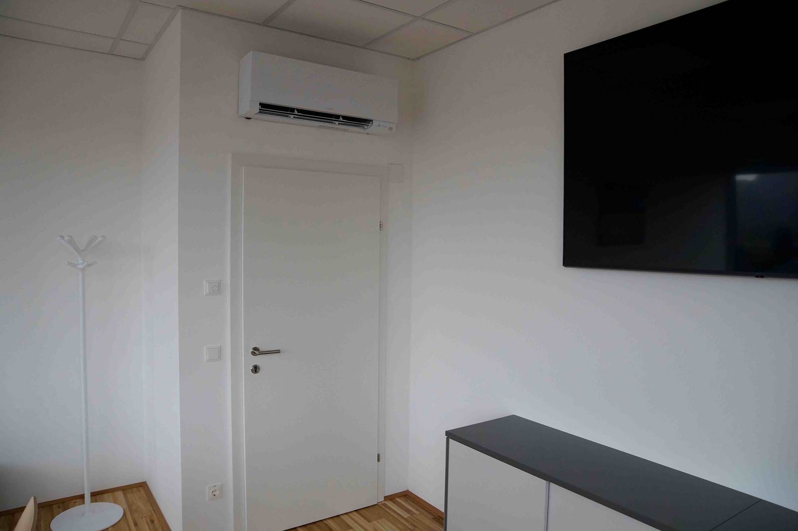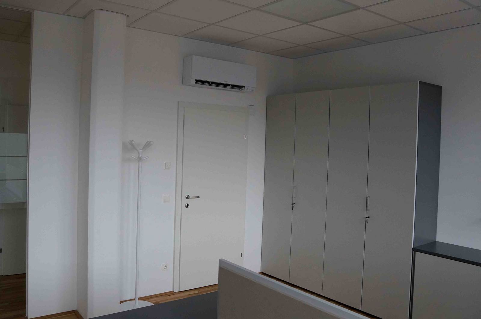 Im 2.OG, wurden für die Klimatisierung in den Büroräumen der Fa. Wieser + Scherer, Kanaleinbaugeräte eingebaut. Die Mitsubishi Electric SEZ-M Kanaleinbaugeräte sind nahezu lautlos und verrichten unsichtbar ihre Arbeit. Durch die niedrige Einbauhöhe von nur 200 mm, lassen sich die Geräte einfach in der Zwischendecke installieren. Für den Transport der konditionierten Luft über Luftblenden und Lüftungskanäle in den Raum stehen 50 Pa externe statische Pressung zur Verfügung.