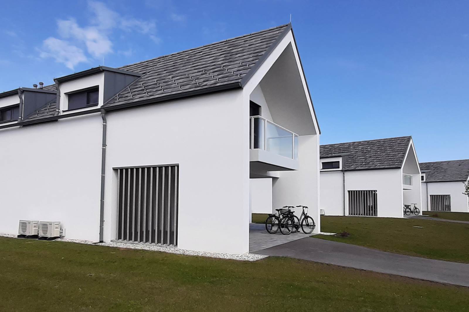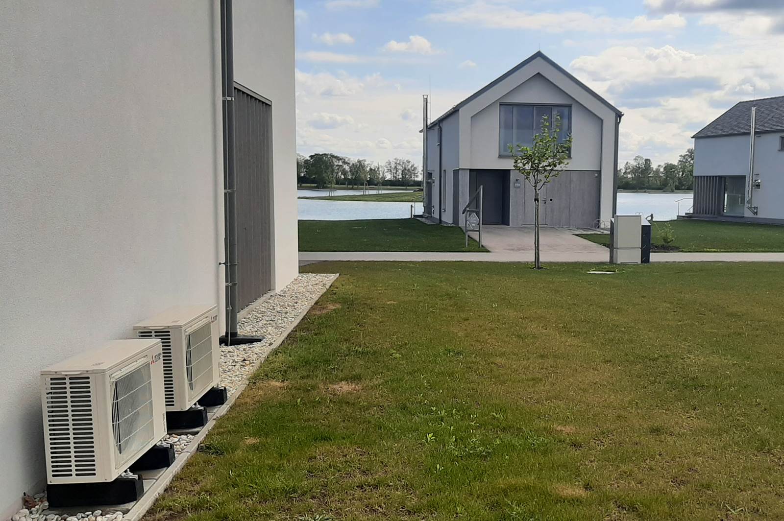 Zudem entstanden weitere exklusive Ferienhäuser in ökologischer Bauweise. Mit einem traumhaften Blick auf den Badesee oder die sogenannten Pannonia Hills genießen Gäste dort Ruhe und Privatsphäre. Hier wurden zur Klimatisierung Mitsubishi Electric Multi-Split-Anlagen in der Zwischendecke eingebaut. Die Kanaleinbaugeräte verrichten nahezu lautlos und unsichtbar ihre Arbeit. Über Luftblenden und Lüftungskanäle transportieren die Klimageräte die konditionierte Luft in die einzelnen Räume.
