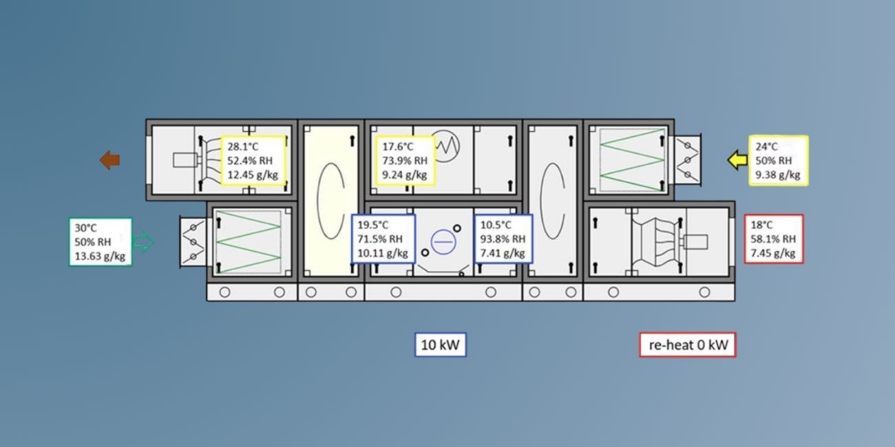 - Using a sorption rotor to pre-condition the air and reduce the load on the cooling coil