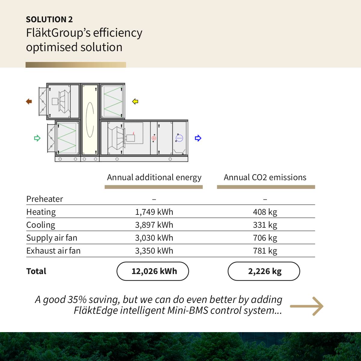 The use of intelligent controls reduces the energy consumption even further, especially when combined with FläktEdge.