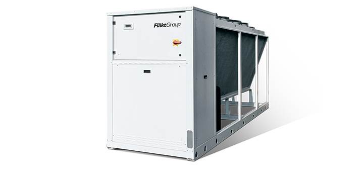 In the larger capacity range from 380 kW to 1700 kW, FläktGroup relies on units with full inverter screw compressors for which the refrigerants R-513A or R-1234ze are available. When using R-1234ze, plus points are achieved in building certification programs. All devices are available with built-in pumps.