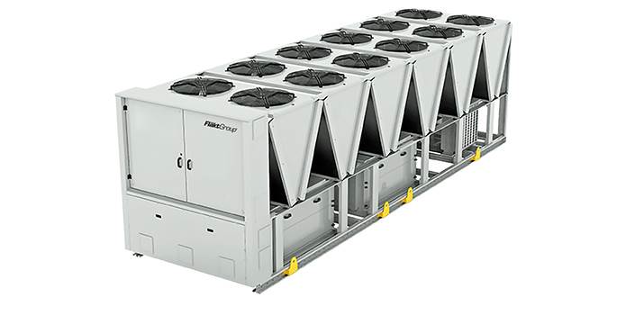 The air-cooled chillers of the FGAC product line and reversible air-water heat pumps from the FGAH product line from FläktGroup are available with the three low GWP variants mentioned above. They are factory filled with refrigerant and hermetically closed. The devices are intended for outdoor installation so that the circulating refrigerant is not in the building, but only outdoors. This is very easy to meet the necessary security measures. These include, for example, distance rules to roof hatches or air intakes. An elaborate safety consideration, as required for direct evaporating VRF systems with flammable A2L refrigerants, is saved, as it is impossible to escape refrigerant during leaking evaporators or pipeline connections in occupancy areas. Compliance with the maximum permitted refrigerant quantities and, if necessary, further safety measures are no longer required.