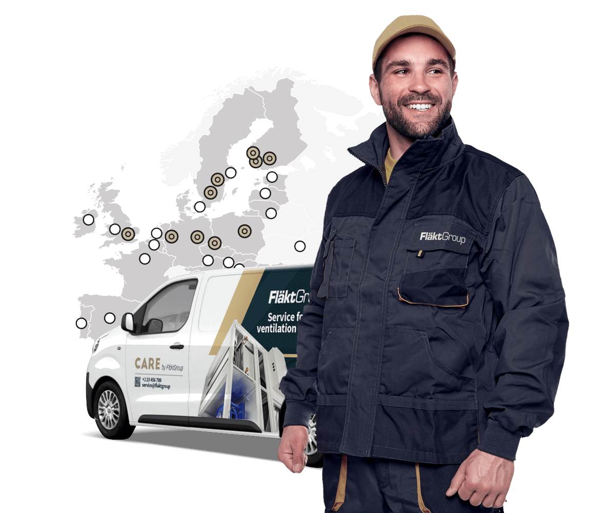Con nuestras soluciones de Premium Service, y especialistas cualificados, FläktGroup está a su lado para garantizar un funcionamiento fiable y el máximo rendimiento de todos sus sistemas de ventilación. A través de “CARE by FläktGroup”, ofrecemos una gama completa de servicios de ciclo de vida del producto para su sistema HVAC.