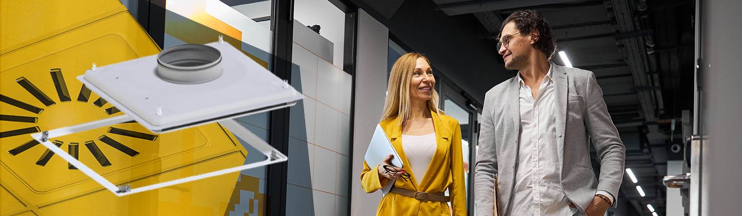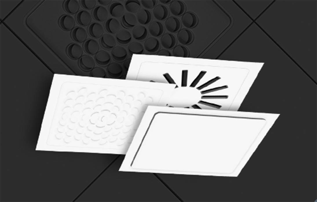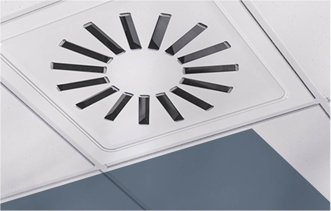 Sovitekehyksellä hajottaja saadaan osaksi kattojärjestelmää ja sovitetaan saumattomasti alakattomoduuleihin. Kattoon asennettava ilmanvaihtotekniikka istuu tyylikkäästi tilojen arkkitehtuuriin, ne ovat huomaamaton osa kattoa ja tilakokonaisuutta.