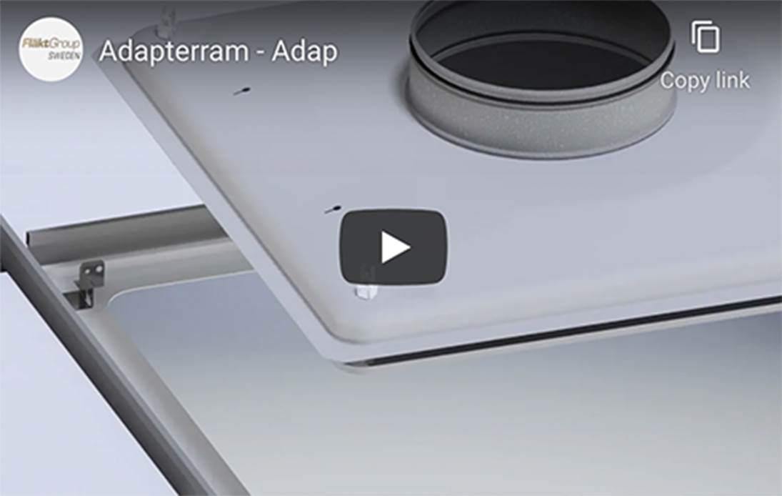 Sovitekehystä voidaan käyttää yhdessä tiettyjen pyöreiden ja suorakulmaisten (535 x 535 mm) hajottimien kanssa. ADAP on helppo asentaa ja se sopii useimpiin 600 x 600 mm:n alakattojärjestelmiin. Kooltaan 595 x 595 mm olevat suorakulmaiset hajottimet voidaan asentaa suoraan A-reunaisiin kattolevyihin ilman sovitekehystä.