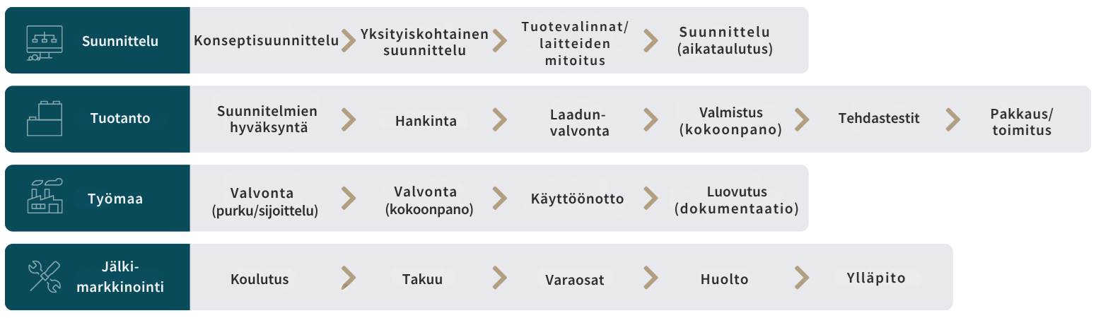 Suunnittelusta jälkimarkkinointiin ja useille rakennustyypeille paikan päällä.