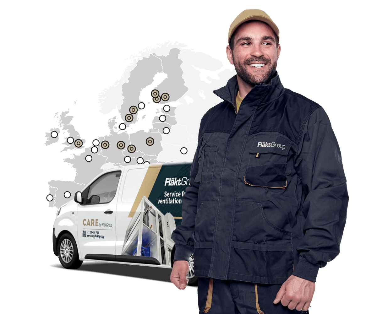 FläktGroupin korkealuokkaiset palveluratkaisut ja ammattitaitoiset asiantuntijat varmistavat kaikkien ilmanvaihtojärjestelmienne luotettavan toiminnan ja parhaan suorituskyvyn. ”CARE by FläktGroup” -konseptiimme kuuluu monipuolinen valikoima elinkaaripalveluita LVI-järjestelmällesi.