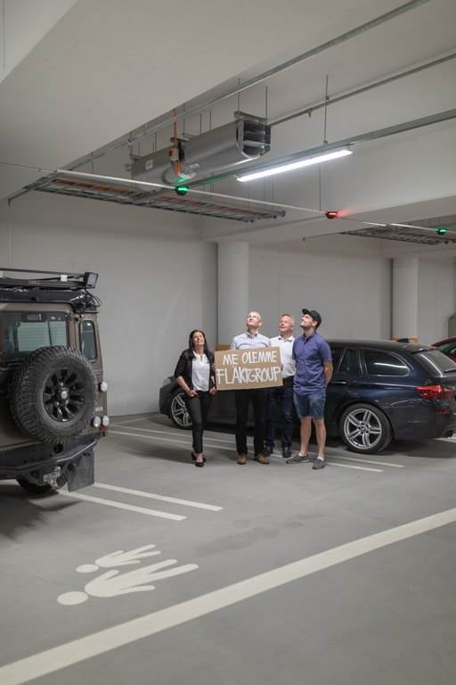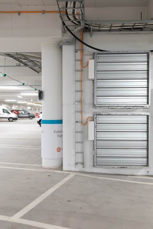 – Suuntapainepuhaltimet ovat täydellinen ratkaisu maanalaiseen paikoitustilaan, koska niillä säästetään merkittävästi tilaa. Kun raskas kanavajärjestelmä jää pois, hallin kattoon ei tarvitse varata tilaa kanavistolle ja säästöä tulee samalla myös rakentamiskustannuksiin. Suuntapainepuhaltimien ansiosta parkkihallin rakennekorkeus pystyttiin optimoimaan. Ratkaisu on myös tyylikäs, Jussi Gustafsson sanoo.