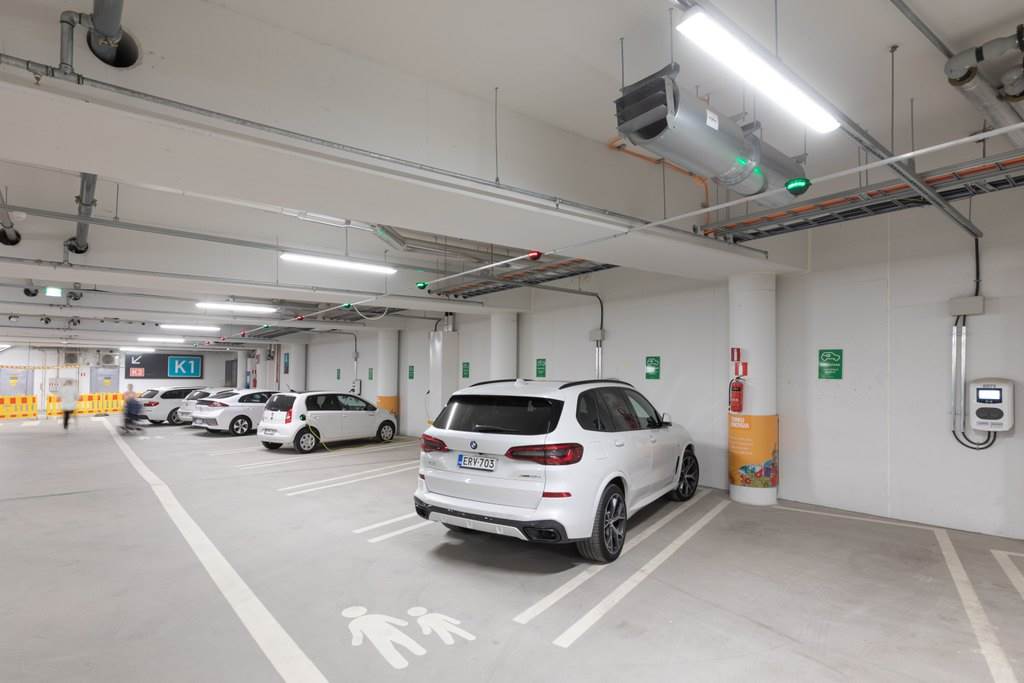 - Kahdessa tasossa paikat 620 autolle, 20 sähköauton latauspistettä ja autopesula