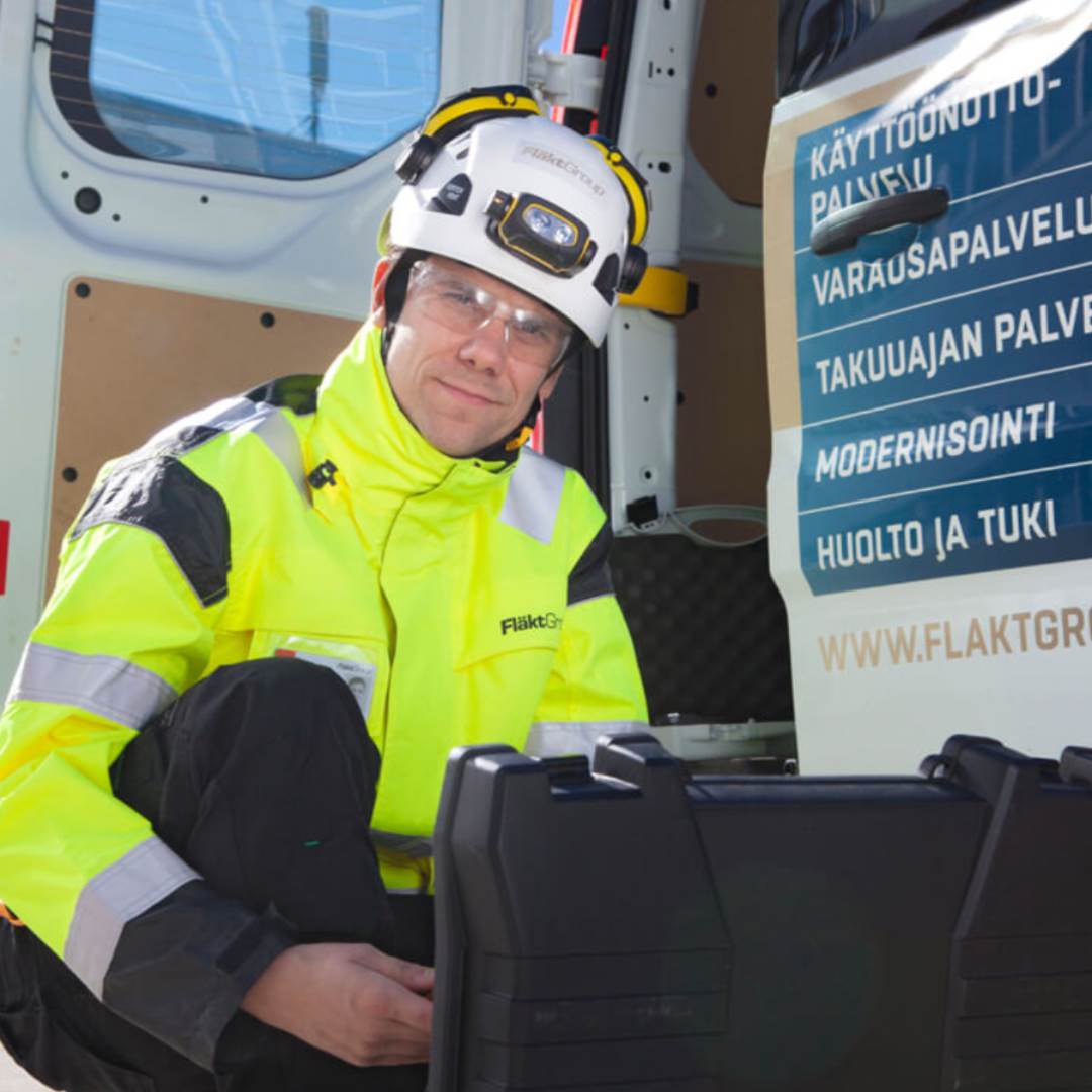 FläktGroupin koulutettu asiantuntija varmistaa laitteiston toimivuuden määräajoin suositusten mukaisesti.