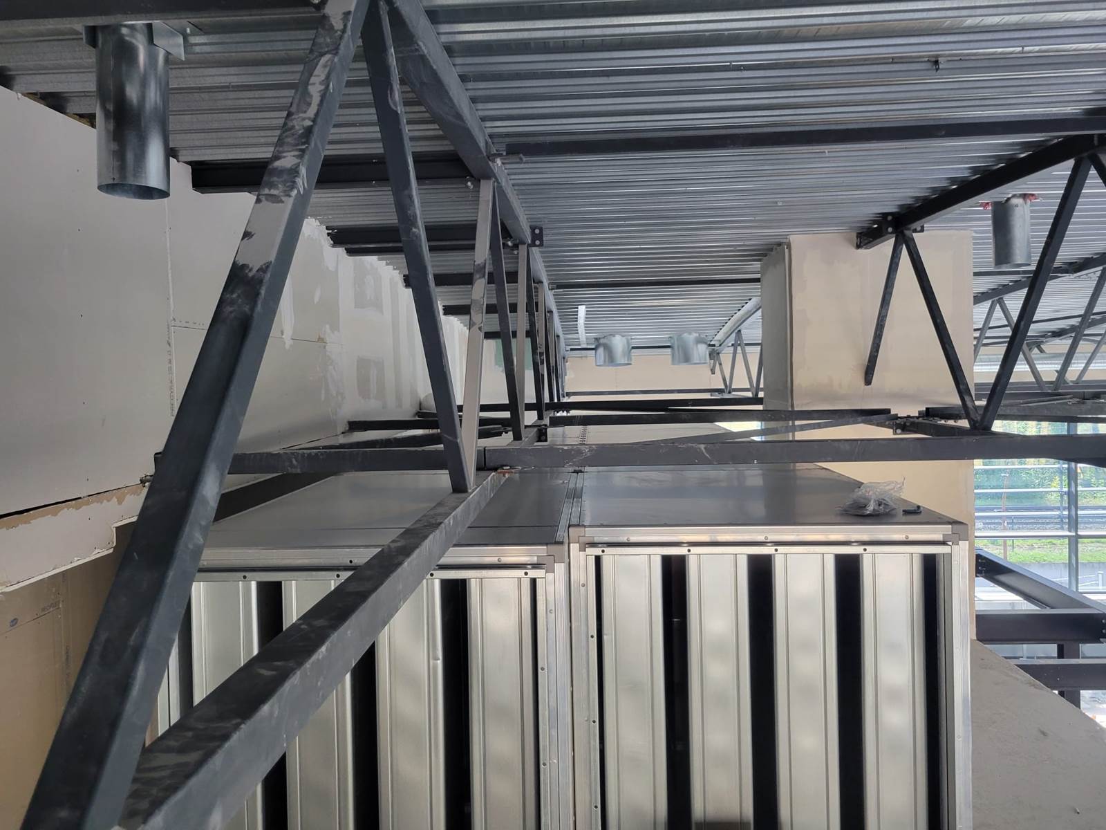 Une étude fine avec le BE pour proposer le meilleur compromise de performance énergétique et de qualité d’air avec des contraintes spaciales fortes. Une CTA découpée en 6 modules pour passer entre les charpentes dans une ouverture de toit réduite (2300mm au plus large) et une prestation complete d’assistance à l’assemblage ainsi qu’un démontage / remontage de l’échangeur à plaques par notre technicien.