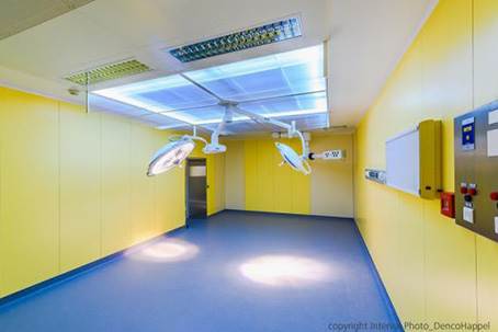 Solution : CTA CAIRplus en extérieur de taille moyenne au débit de 2 400m3/h, pour l’apport d’air neuf hygiénique, et deux plafonds filtrants FHM-PO avec recycleur, pour le traitement d’air, des deux blocs opératoires.