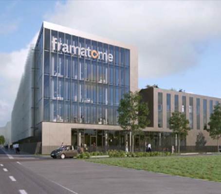 Construction du futur siège social de la société Framatome, dans le quartier de Gerland à Lyon. Ce bâtiment de plus de 27 000m² regroupera 1 700 salaries.