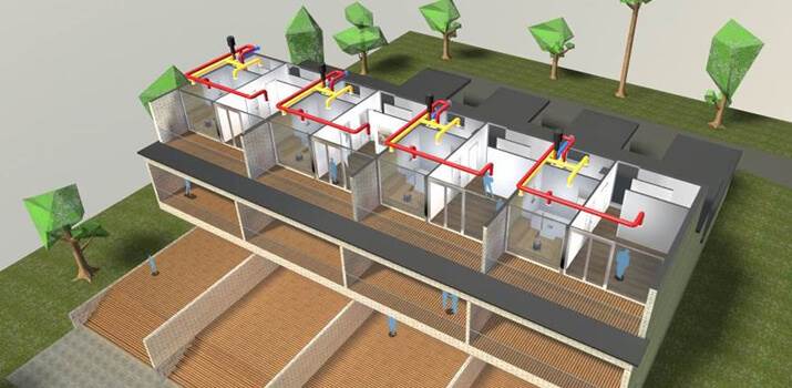 This silent system solution is a good option for easy maintenance since there is no need access to individual apartments. Energy effience solution that offers low life cycle costs.
