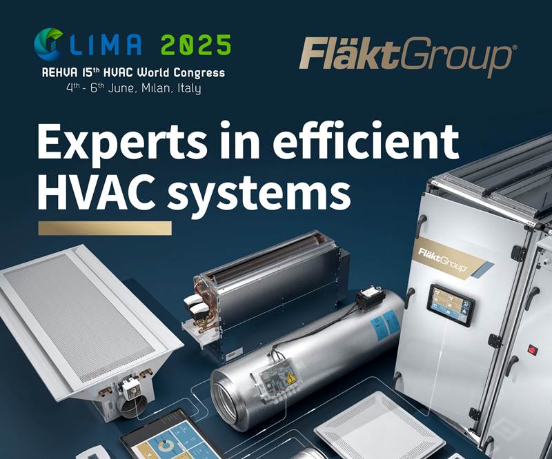 FläktGroup Sponsor del REHVA HVAC World Congress CLIMA. Il tema dell'edizione 2025, ospitata a Milano e co-organizzata da AiCARR, è "Decarbonized, healthy, and energy-conscious buildings in future climates”.