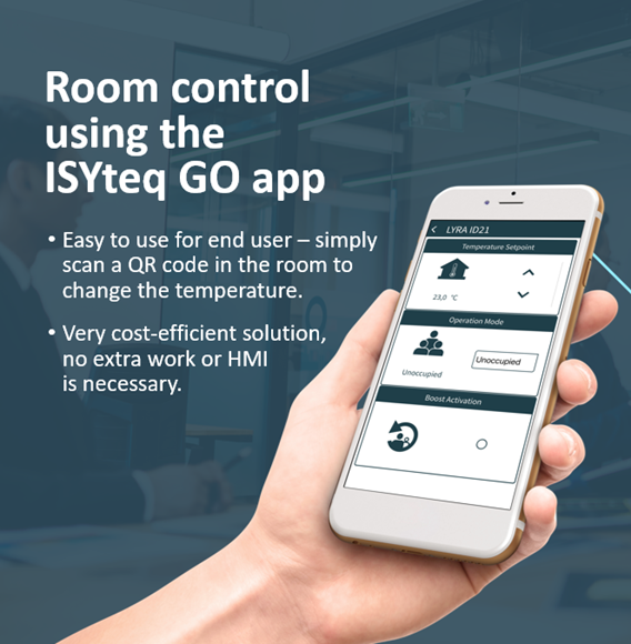 ISYteq GO can also be used by the building users to allow them to manage the indoor climate within the parameter setpoints. The access can be provided from a QR code that can be scanned by the individual. This means costs on projects can be reduced by the removal of the HMI.