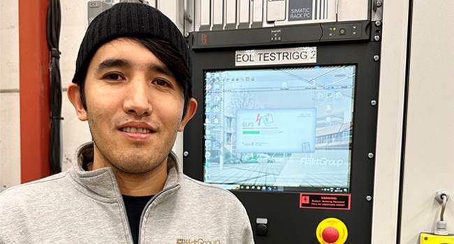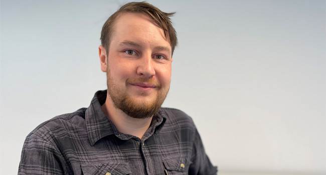 Arvid började jobba som montör i elgruppen och är idag anställd som Controls Engineer i styrgruppen på Produktionsteknik. ”Just det här att vi har möjlighet att sätta oss in i och lära oss nya saker, det gillar jag!”