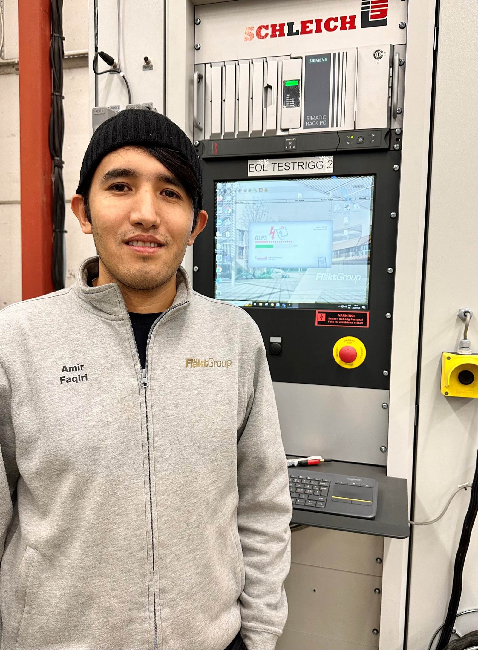 Amir, du är utbildad elektriker och jobbar i styrgruppen i vår Jönköpingsfabrik. Berätta om din resa hos oss på FläktGroup och vad du gör på jobbet.