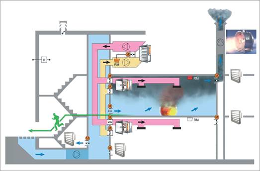 Ventilationskrav: rökevakuering från korridorerna för att förbättra räddningstjänstens sikt.