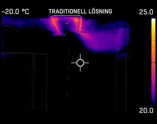 På en traditionell baffel med VAV i värmefallet, går oftast baffeln på ett lågt tilluftsflöde och ett med lågt tryckfall över baffelns tilluftsdysor eller spalter. Detta för med sig låg impuls på luften och värmen har svårt att spridas jämt i rummet. En stor temperaturgradient uppstår. Den varma luften stannar helt enkelt kvar vid taket.