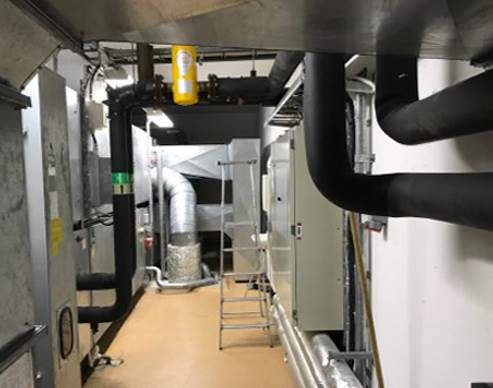 Många av de aggregat som installerades under denna period, lyftes in i fläktrummen innan tak och väggar var monterade. När de nu skall bytas, är det väldigt trångt och svårtillgängligt. Då kan ett modulaggregat förenkla intransport betydligt.