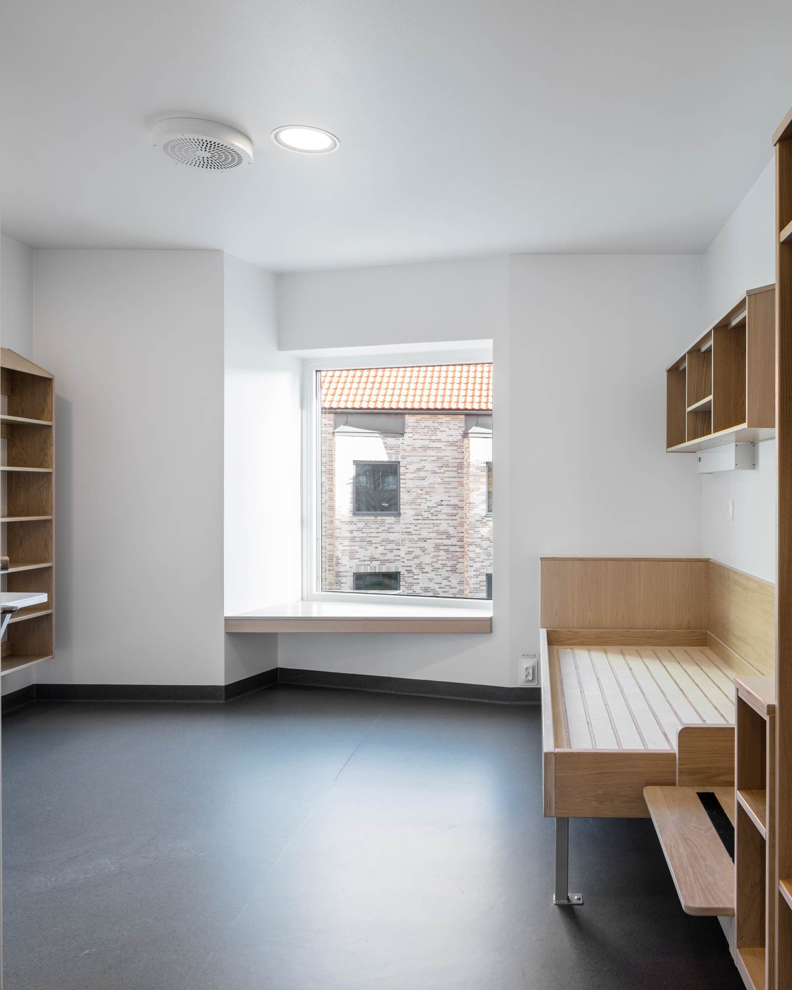 De klosterlika byggnaderna innehåller 86 slutenvårdsplatser, där ett boende med behagligt klimat ska kombineras med rekreationsytor, terapirum och personalutrymmen.